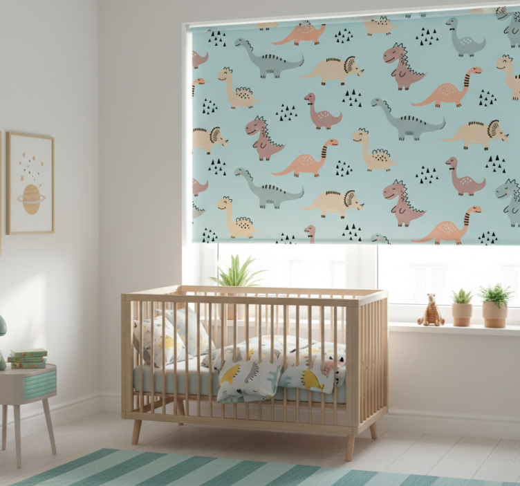 Store enrouleur pour chambre enfant fond bleu dinosaures