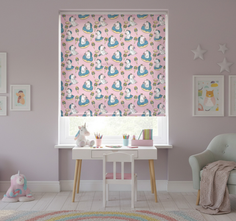 Référence: E6989Transformez la chambre de votre enfant en un véritable royaume enchanté avec notre store enrouleur pour chambre enfant licornes et glaces. Avec ses motifs captivants de licornes colorées et de délicieuses glaces, ce store apporte une touche de magie et de fraîcheur à l'espace. Chaque regard vers ce design joyeux éveille l'imagination et crée une atmosphère ludique, idéale pour les moments de rêve et de jeu.