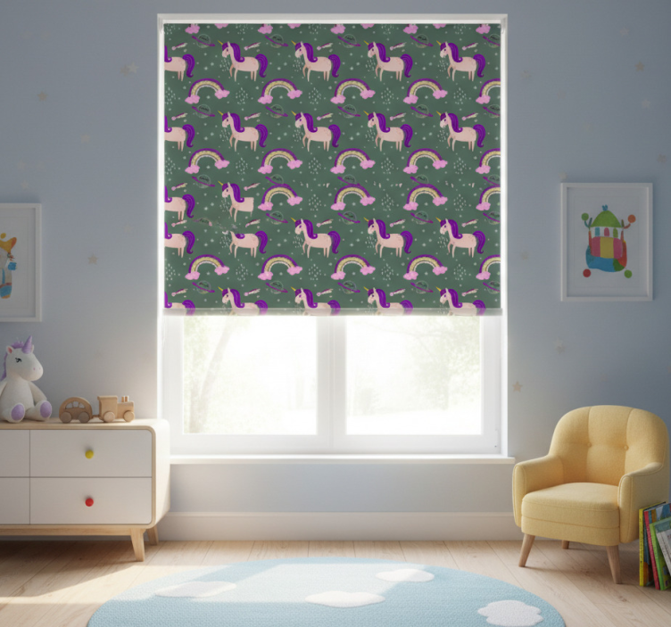 Store enrouleur pour chambre enfant licornes roses et vertes