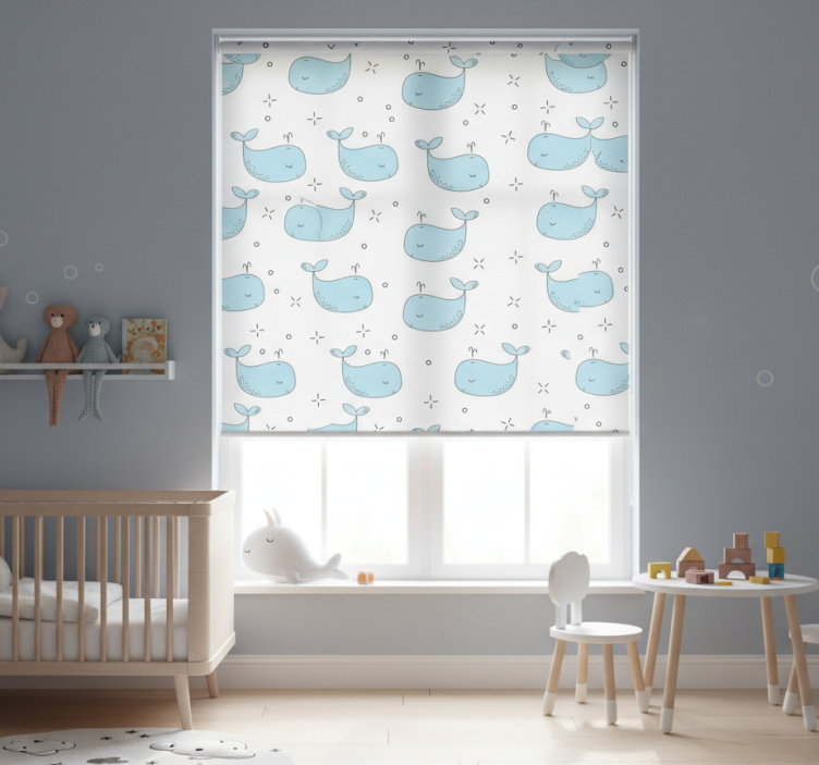 Store enrouleur pour chambre enfant motif baleines sans fin