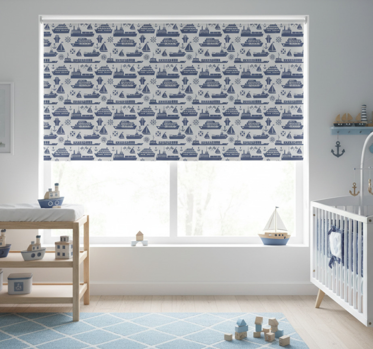 Store enrouleur pour chambre enfant motif bateaux bleus