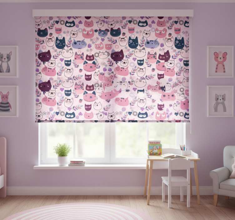 Store enrouleur pour chambre enfant motif chats roses