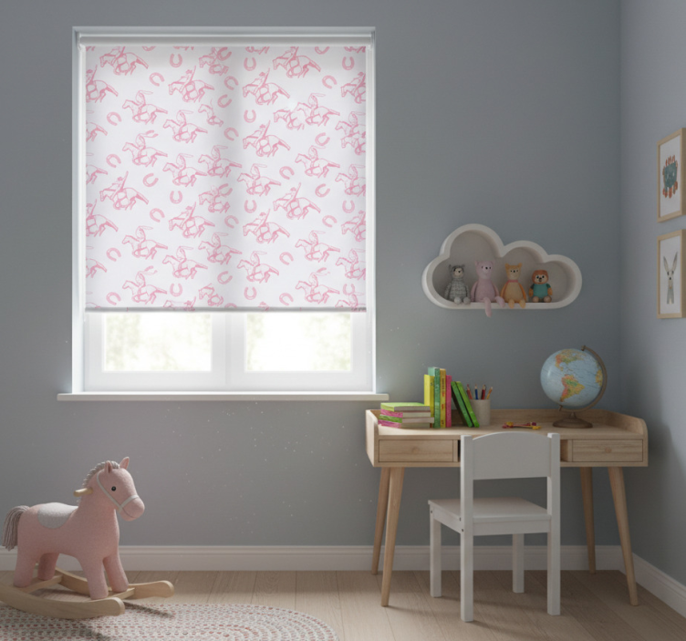 Store enrouleur pour chambre enfant motif cheval cowboy rose