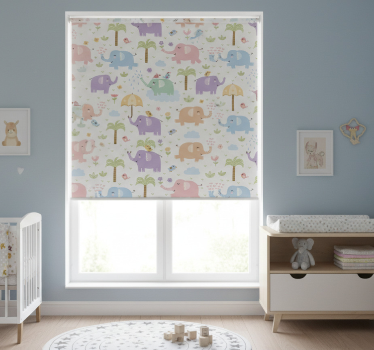 Référence: E7063Apportez une touche ludique et chaleureuse à la chambre de votre enfant avec notre store enrouleur pour chambre enfant motif éléphants. Ce design joyeux met en avant des éléphants colorés et amusants qui sauront captiver l'imagination des petits. Avec ses couleurs vives et son motif enchanteur, il transforme l'ambiance de la pièce en un espace accueillant et réconfortant, parfait pour les jeux et les rêves !