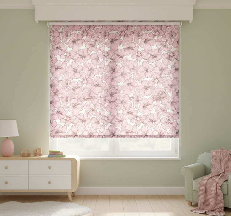 Store enrouleur pour chambre enfant motif hibiscus rose
