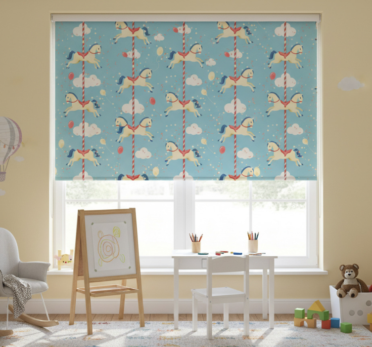 Référence: E7042Transformez la chambre de votre enfant en un espace magique avec notre store enrouleur pour chambre enfant motif manège. Ce design enchanteur présente de jolis manèges colorés, des animaux joyeux et des nuances douces qui stimulent l'imagination. Chaque détail est soigneusement pensé pour apporter une touche de rêve à la décoration.