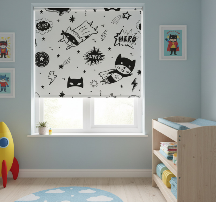 Référence: E7218Transformez la chambre de votre enfant avec notre Store enrouleur pour chambre enfant motifs super-héros ! Ce store est orné de motifs dynamiques et colorés qui captiveront les jeunes aventuriers. Il apporte une touche ludique à la décoration tout en offrant un aspect fonctionnel. Avec ses motifs inspirés des super-héros, il crée un environnement stimulant et joyeux, parfait pour les rêves et les jeux !