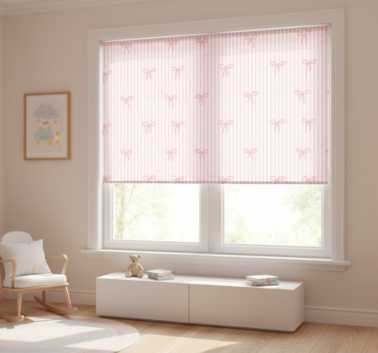 Store enrouleur pour chambre enfant rayures roses et nœuds