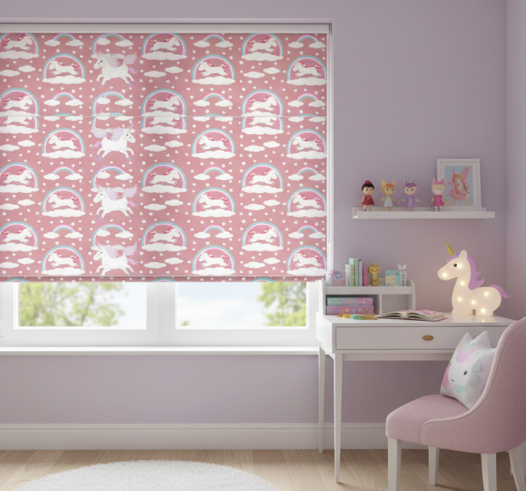 Store enrouleur rose thème licorne magique