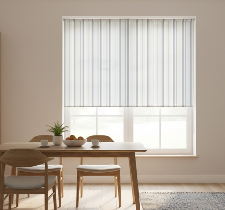 Store enrouleur salle à manger rayures bleues et beiges 80's
