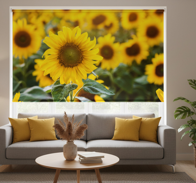 Store enrouleur salon champ de tournesols en gros plan
