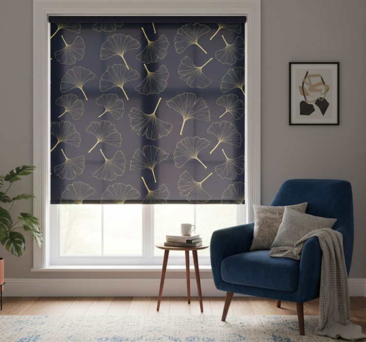 Store enrouleur salon feuilles de ginkgo dorées 3d
