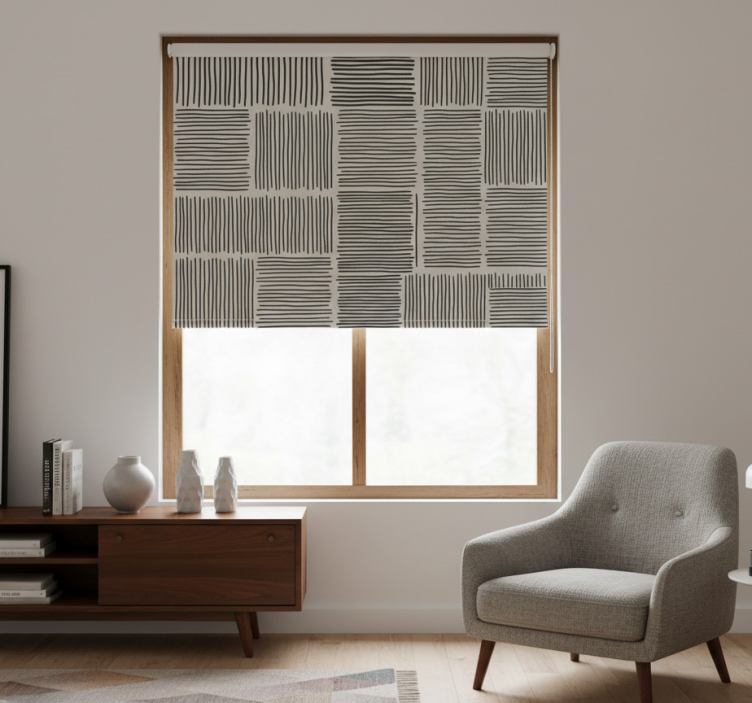 Store enrouleur salon lignes noir et blanc style vintage