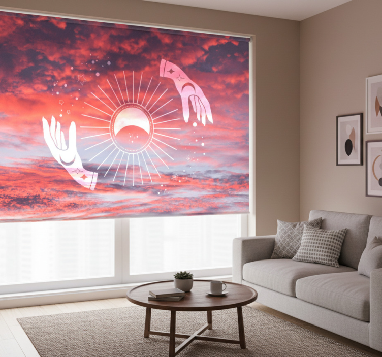 Store enrouleur salon mains zen dans le ciel