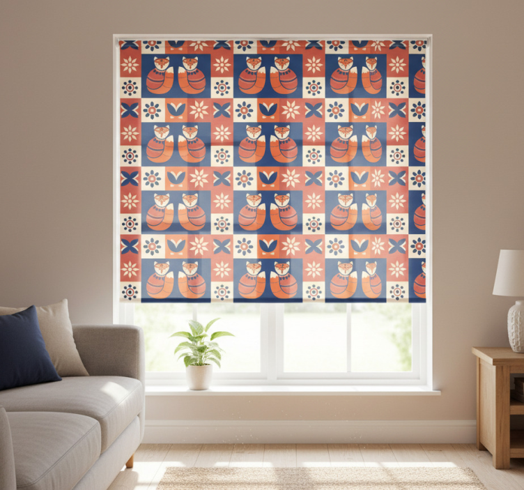 Store enrouleur salon motif animal traditionnel coloré