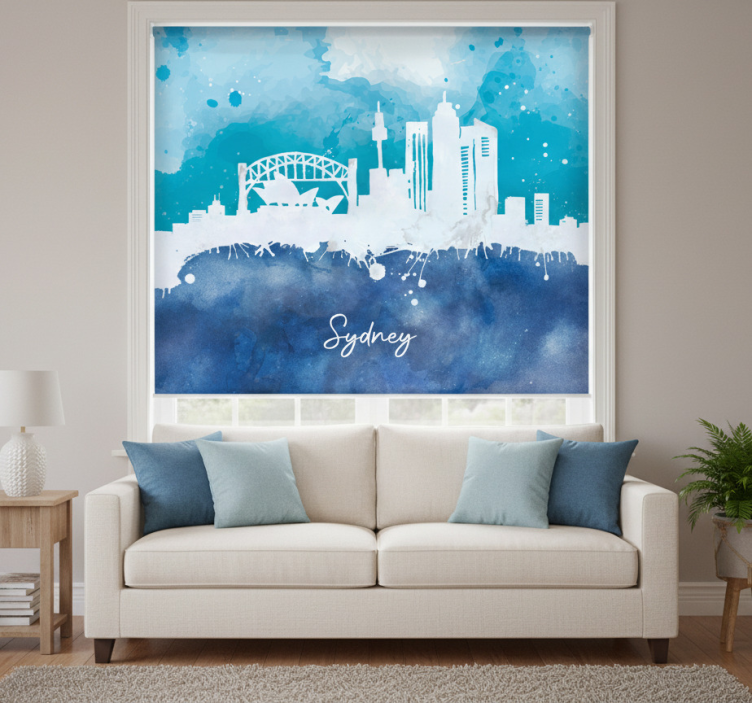Store enrouleur salon skyline de sydney aquarelle