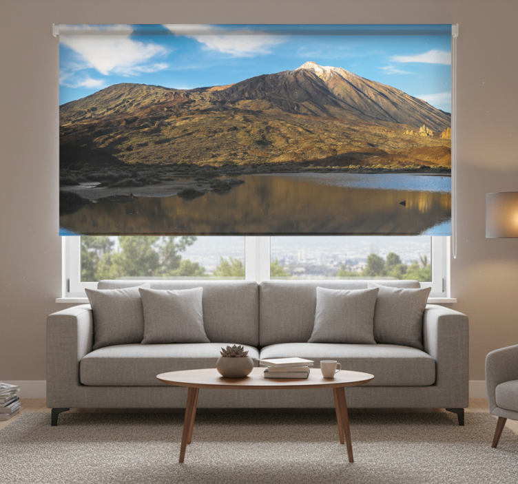 Store enrouleur salon teide reflété dans l'eau