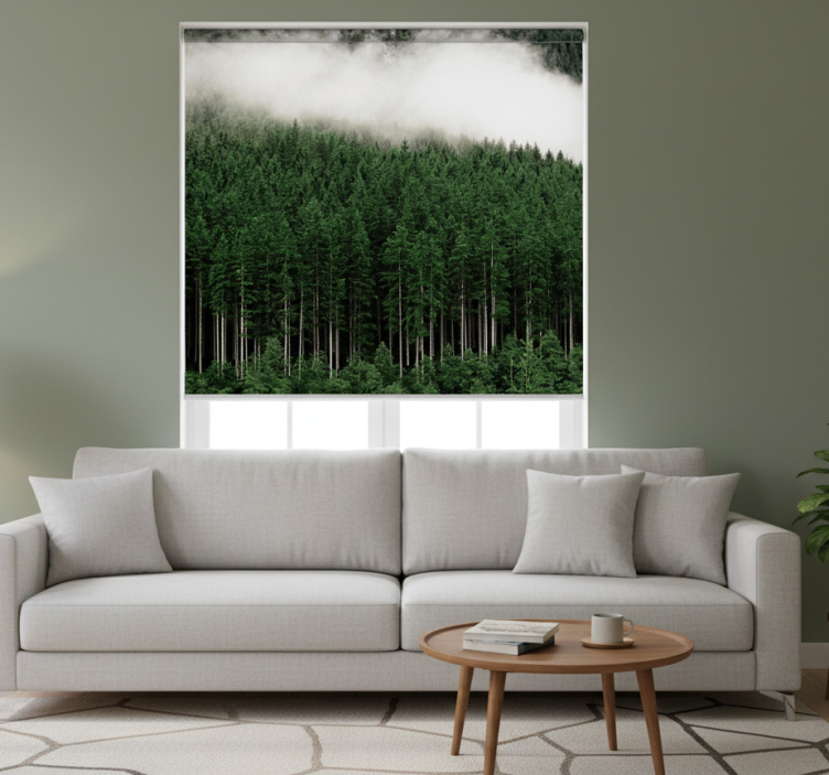 Store enrouleur salon vue aérienne de pins naturels