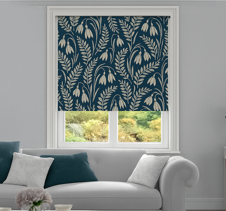 Store enrouleur scandinave fleurs perce-neige beige marine