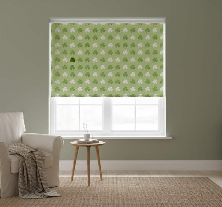 Store enrouleur vert rayures trèfle vert et blanc