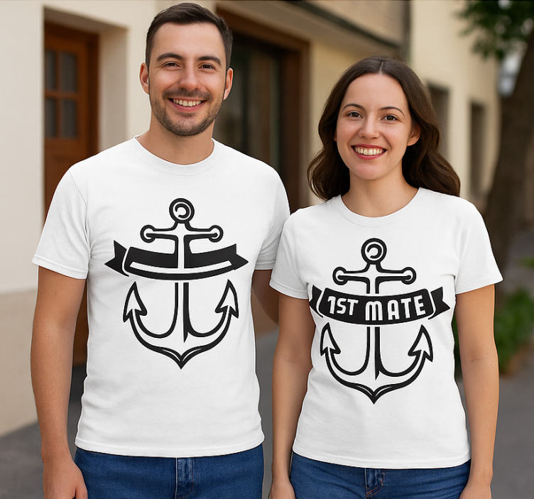 Optez pour le T-shirt couple capitaine - second de bord pour affirmer votre amour avec panache ! Ce vêtement unique vous permet de partager votre complicité avec élégance, tout en étant à l'aise. Imaginez-vous, main dans la main, arborant fièrement ce T-shirt qui parle de votre histoire. C'est un choix idéal pour les couples qui souhaitent se démarquer et célébrer leur relation avec un brin de créativité et de joie !