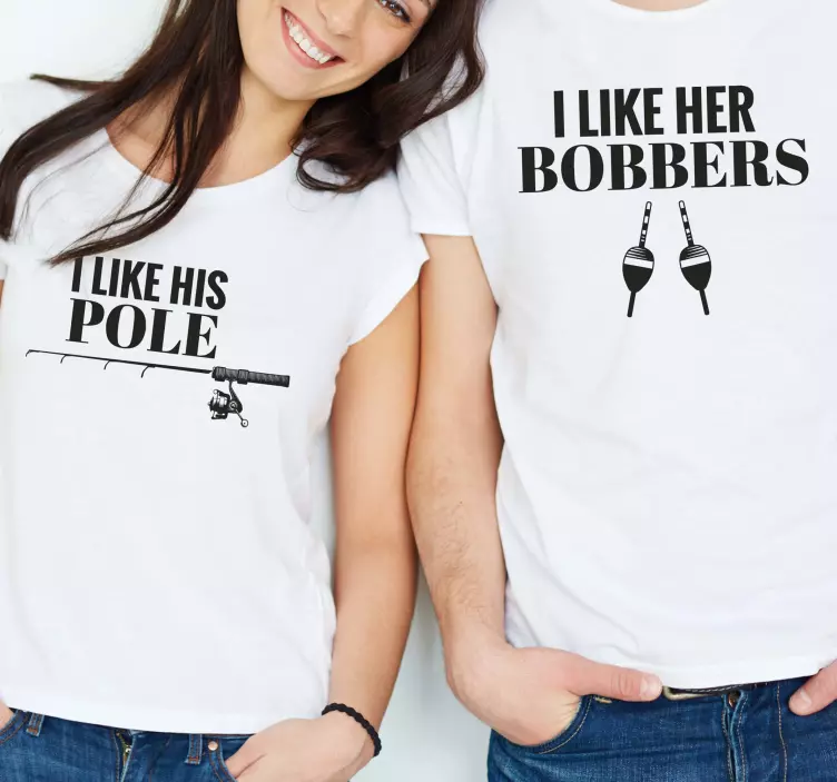 Référence: T5280Cette image présente un couple portant des chemises ludiques avec des citations humoristiques liées à la pêche. Chaque chemise met en avant des phrases pleines d'esprit, alliant plaisir et charme, parfaites pour les couples qui aiment pêcher ensemble. Le design adopte un thème léger qui ne manquera pas d'amuser tant les porteurs que les spectateurs.