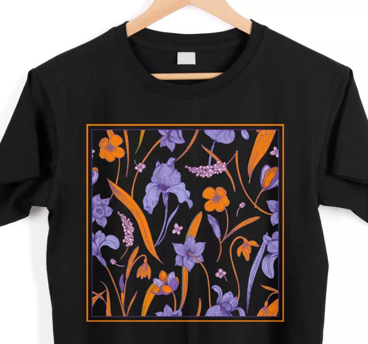 Découvrez notre T-shirt Élégance à motifs floraux, un véritable chef-d'œuvre graphique qui célèbre la beauté de la nature. Avec des illustrations vibrantes de crocus et de fleurs en pleine floraison, ce t-shirt coloré évoque l'art floral dans une palette de teintes orange et mauve. Chaque détail de sa conception graphique met en valeur la délicatesse des plantes, faisant de ce vêtement un incontournable pour ceux qui apprécient un style à la fois élégant et joyeux !