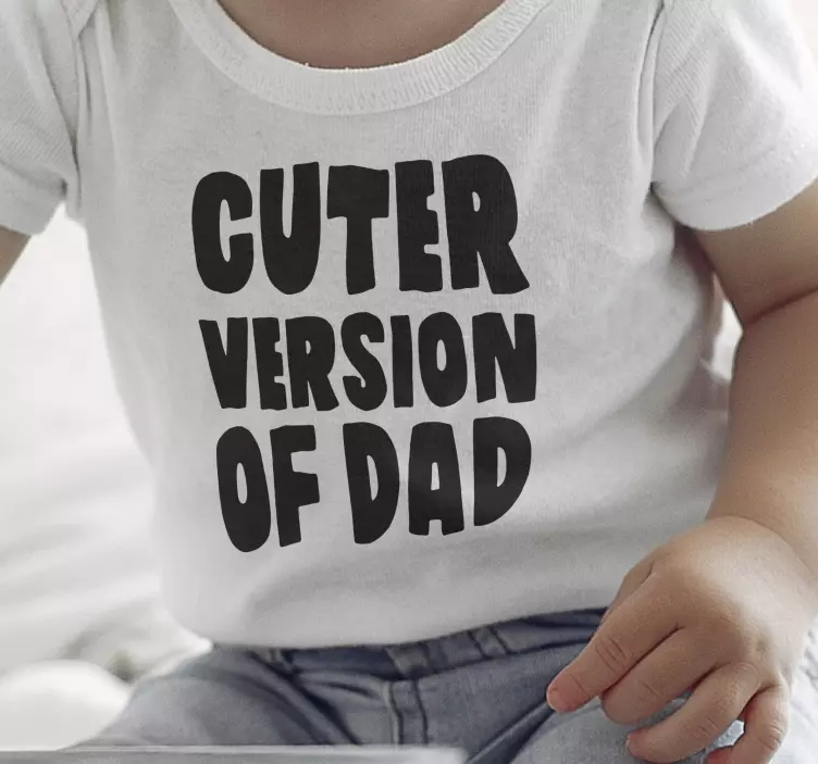 Référence: T5401Ce design ludique présente un texte audacieux et stylisé qui dit 'Cuter Version of Dad.' Les lettres noires contrastent avec un fond clair, créant un look amusant et engageant pour une tenue d'enfant. Idéal pour célébrer les liens familiaux avec une touche humoristique.
