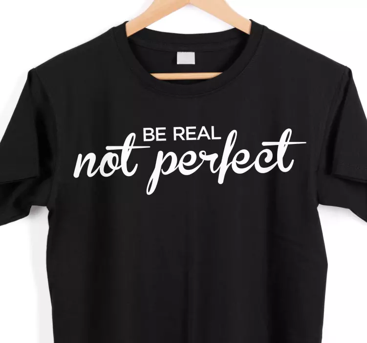 Référence: T5445Cette pièce élégante véhicule un message motivant, mettant en avant la phrase 'Be Real Not Perfect' dans une police attrayante. Les couleurs contrastées renforcent son esthétique minimaliste, en faisant un ajout parfait à une tenue décontractée qui inspire l'authenticité et la confiance.