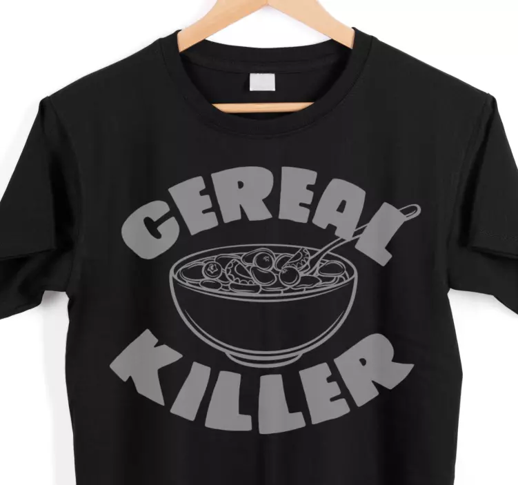 Référence: T4849Ce design présente un concept humoristique centré sur un bol de céréales, mettant en avant une typographie ludique et une approche amusante de la nourriture. Le fond noir met en valeur les lettres audacieuses, créant un attrait accrocheur qui résonne avec les amateurs de céréales.