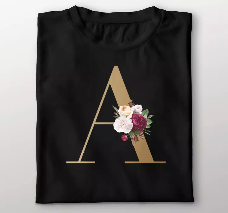Information T-shirts fleur de lettre d'or avec nom