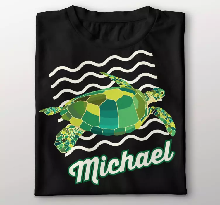 Obtenez ce design et profitez de tous les éléments uniques que vous pouvez utiliser pour changer le look de votre garde-robe. Ce t-shirt est plus qu'un simple design décoratif. Il est fabriqué avec un tissu en coton de haute qualité, agréable à porter et facile à laver. Obtenez ceci pour vous-même ou offrez-le en cadeau personnalisé à quelqu'un d'important. Ce t-shirt comporte des rayures ondulées blanches avec une bande dessinée de tortue verte et un nom personnalisé que vous pouvez utiliser. Affichez votre amour pour les tortues de mer avec style grâce à ce t-shirt de dessin animé avec une tortue verte et un nom personnalisé.