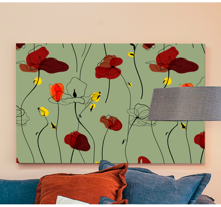Référence: Q6897Ce design complexe présente un agencement délicat de fleurs de coquelicot en rouge, jaune et blanc sur un fond vert doux. Les lignes fluides et les formes organiques créent une composition dynamique, évoquant un sentiment de mouvement et de vie, parfaite pour apporter une touche fraîche de nature à l'intérieur.