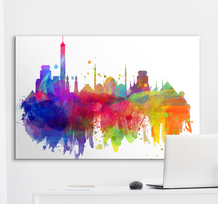 Découvrez l'élégance d'un tableau villes et pays skyline urbaine colorée qui capture l'essence des grandes métropoles. Ce design artistique, mélangeant des grattes ciels abstraits et des éclaboussures de peinture aquarelle, crée une ligne d'horizon colorée qui illuminera votre espace. Chaque œuvre est un hommage à l'art et à la beauté urbaine, apportant une touche de dynamisme à votre décoration.