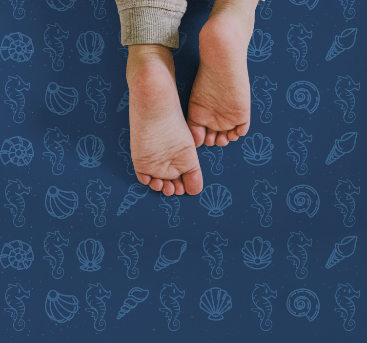 Le tapis vinyle animal illustration de motifs marins présente un design graphique unique mettant en valeur des éléments tels que des coquillages, coquillage, hippocampe et autres symboles de la vie marine, dessinés à la main pour une allure authentique. Parfait pour une décoration nautique et naturelle, ce tapis apportera une touche maritime à votre intérieur !