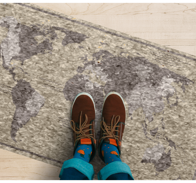 Découvrez notre Tapis vinyle carte du monde illustration mondiale, un véritable chef-d'œuvre qui allie une texture moderne et des couleurs neutres pour apporter une touche géographique à votre espace. Ce monde stylisé s'invite dans votre intérieur et vous transporte à travers les continents, tout en étant un élément décoratif unique et inspirant. Son design captivant éveille votre curiosité et vous fait voyager sans quitter votre maison !