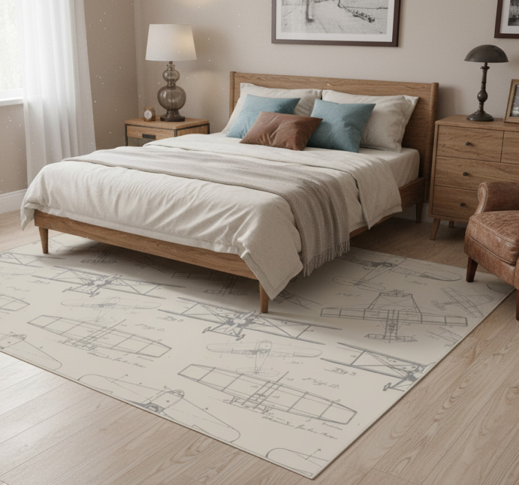 Tapis vinyle chambre motif avions vintage