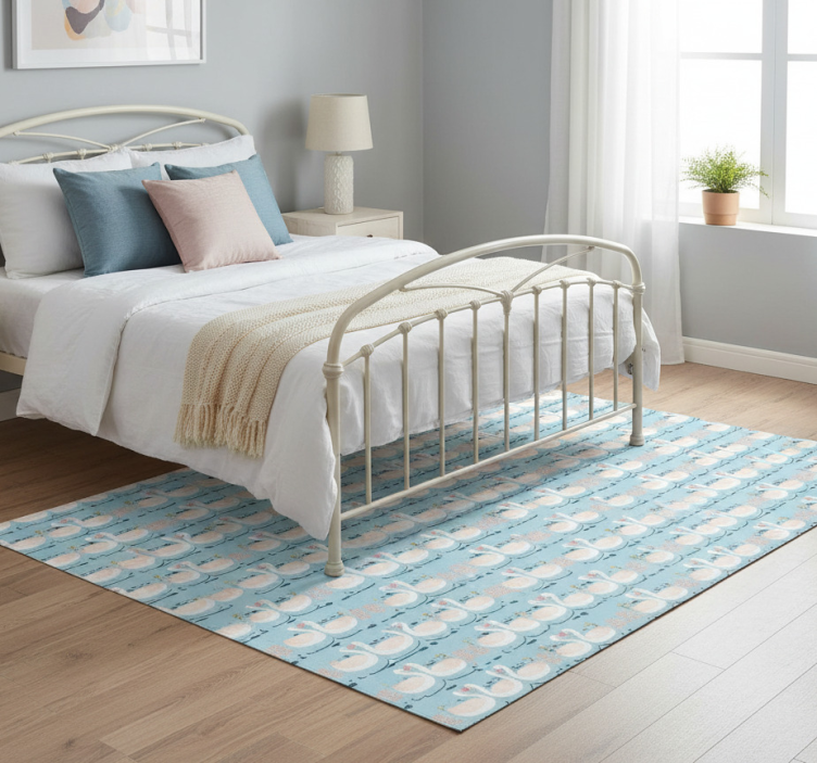 Tapis vinyle chambre motif de cygnes amoureux bleu