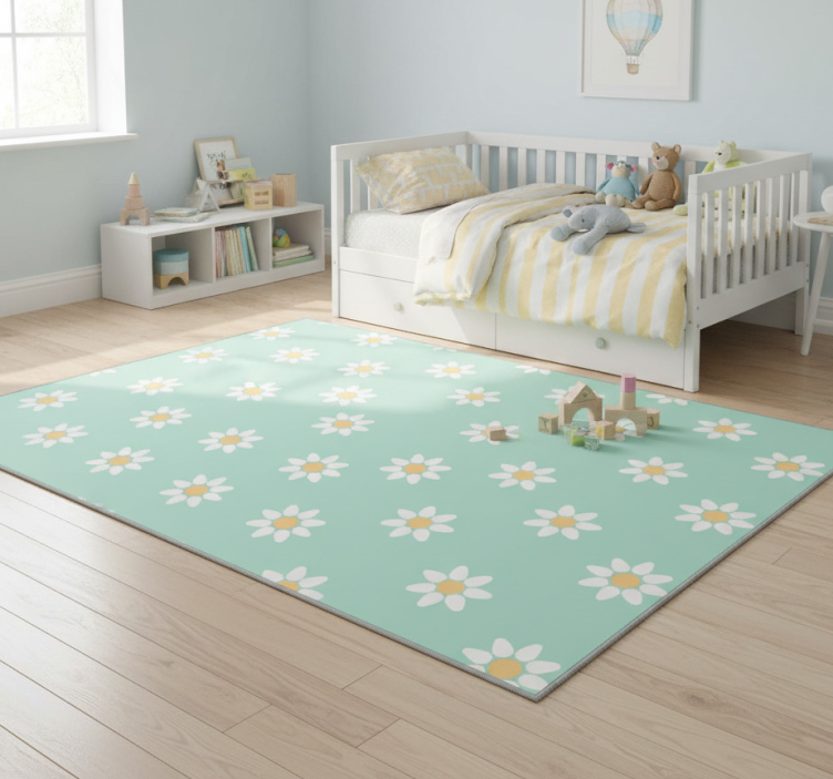 Tapis vinyle chambre motif marguerites enfants