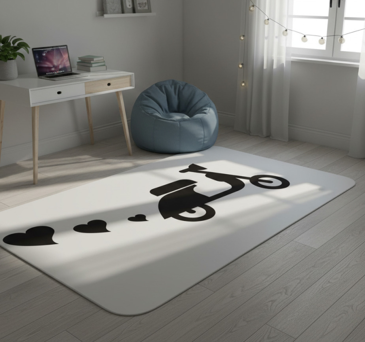 Tapis vinyle chambre moto et cœurs