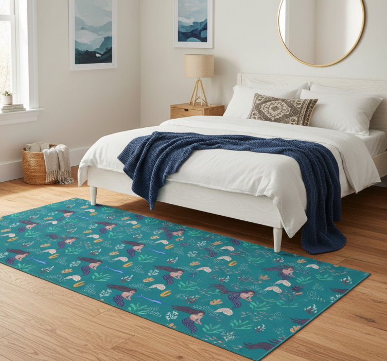 Ce Tapis vinyle chambre est parfait pour créer une atmosphère ludique et joyeuse dans la chambre de vos enfants. Avec ses motifs colorés de sirènes et de poissons épée, il stimule l'imagination tout en étant un élément décoratif qui attire les regards. En ajoutant ce tapis, vous insufflez une nouvelle vie à la pièce, la rendant accueillante et chaleureuse.