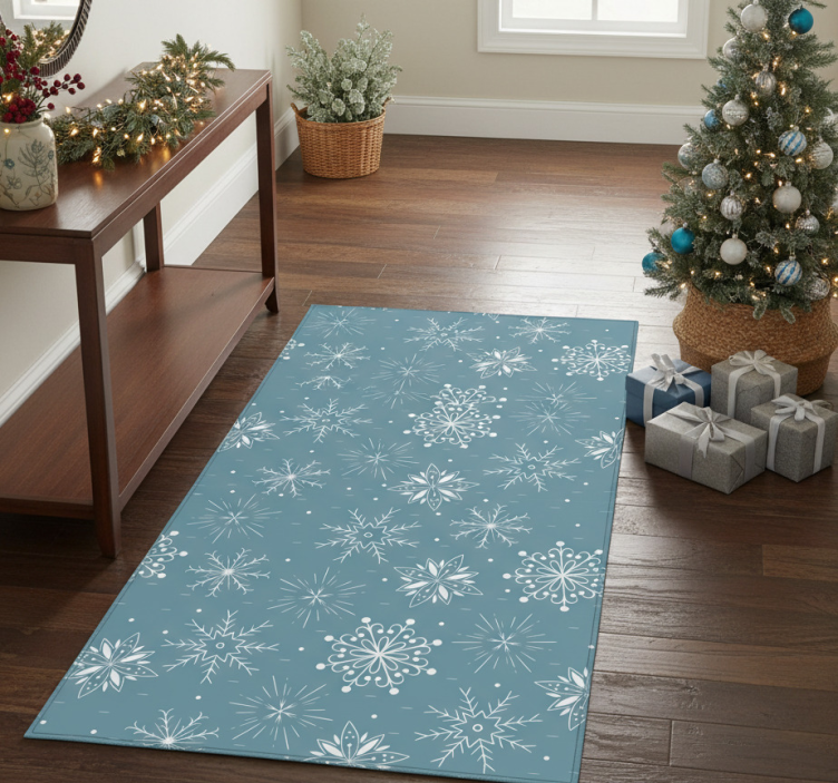 Tapis vinyle noël flocons blancs et bleus décoratifs