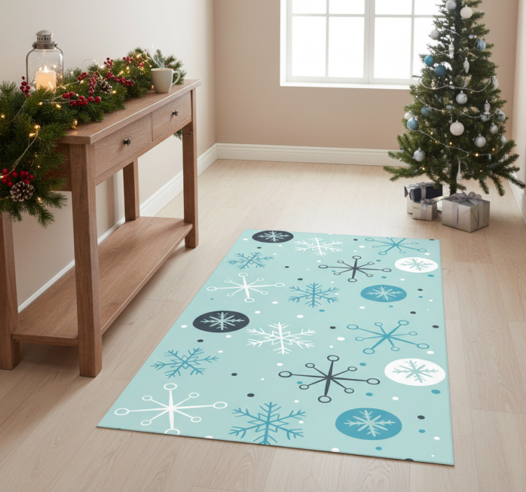 Tapis vinyle noël flocons décoratifs bleus et blancs
