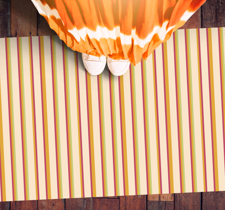 Apportez une touche de modernité à votre intérieur avec le Tapis vinyle rayures élégance multi-rayures. Son design captivant présente des rayures verticales qui se mêlent harmonieusement à des lignes enjouées. Les couleurs vibrantes de jaune, rouge, vert et beige s'unissent pour créer un modèle unique qui attire le regard et égaye n'importe quelle pièce. Ce tapis n'est pas seulement un élément décoratif, mais également un véritable atout pour votre espace de vie !